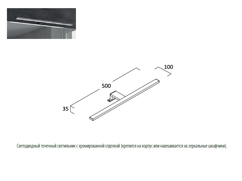Светильник для зеркала BERLONI BAGNO XP56, ширина 50 см, цвет хром.