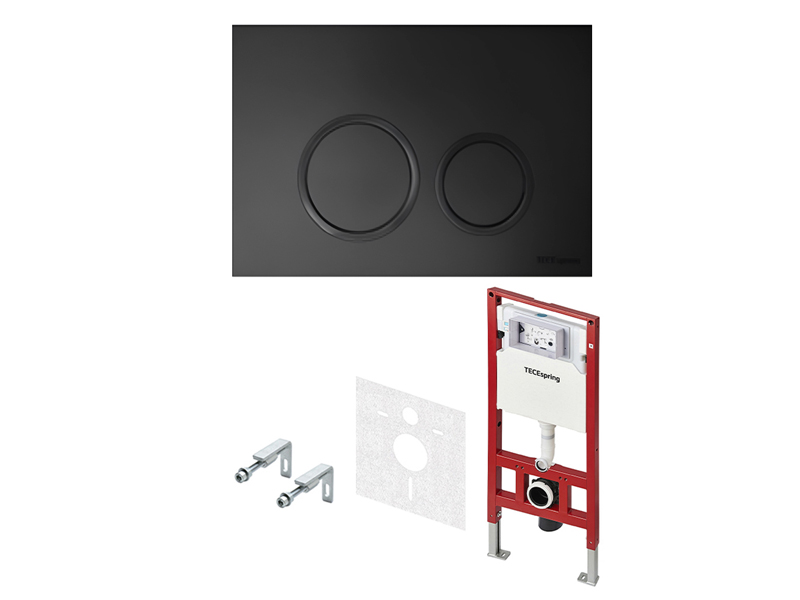 TECEspring R S401104 Комплект с черной матовой панелью и с круглыми клавишами. Новый универсальный модуль TECEspring обладает расширенными возможностями настройки и подключения, совместим с любыми моделями подвесных унитазов.