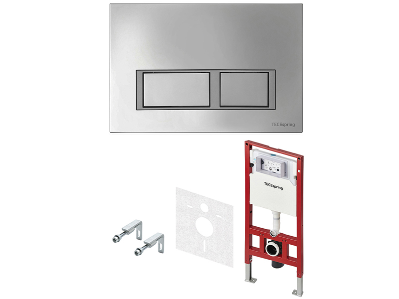 Комплект TECEspring S401201 V с застенным модулем TECEspring base: (h=1144 мм) и пластиковой панелью смыва в цвете хром глянцевый с прямоугольными клавишами, контур клавиш хром матовый.