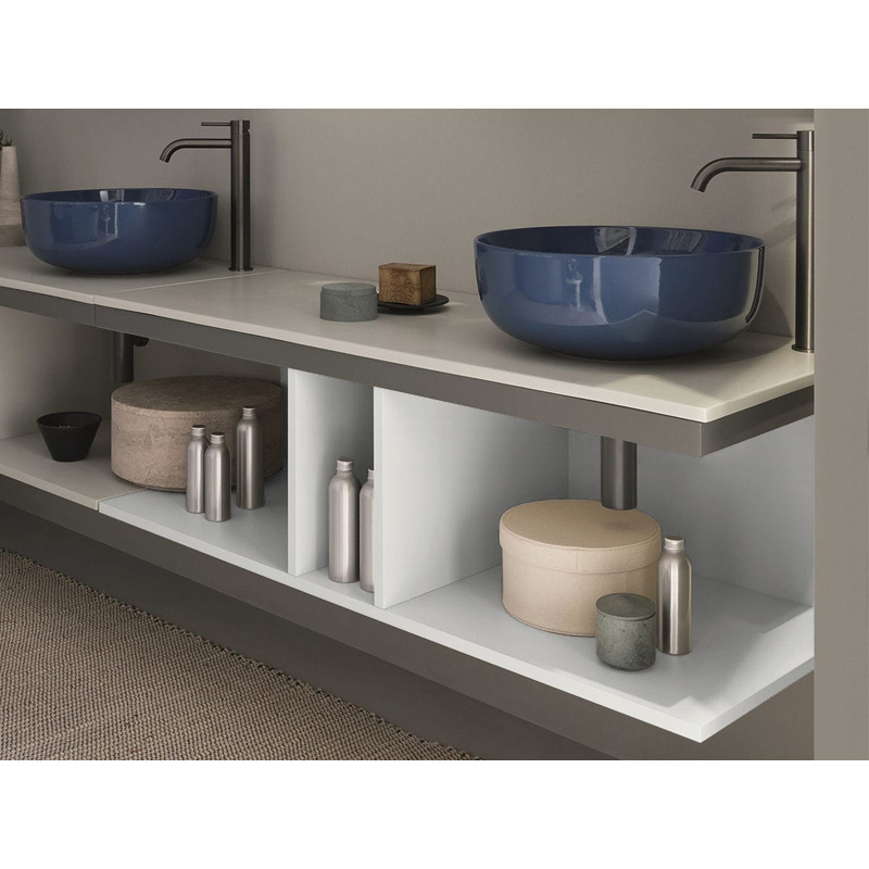 CIELO MULTIPLO MUMBG120CM Тумба под раковину подвесная с открытыми полками в цвете Talco c структурой из стали в отделке Cemento. Обязательное сочетание тумба MUMBG120CM или MUMBG120NM + столешница керамическая MUPI120.
