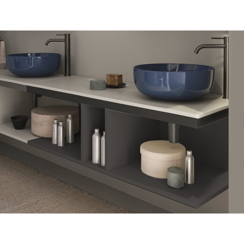 CIELO MULTIPLO MUMBG120NM Тумба под раковину подвесная с открытыми полками в цвете Basalto c структурой из стали в черном цвете. Обязательное сочетание тумба MUMBG120CM или MUMBG120NM + столешница керамическая MUPI120.