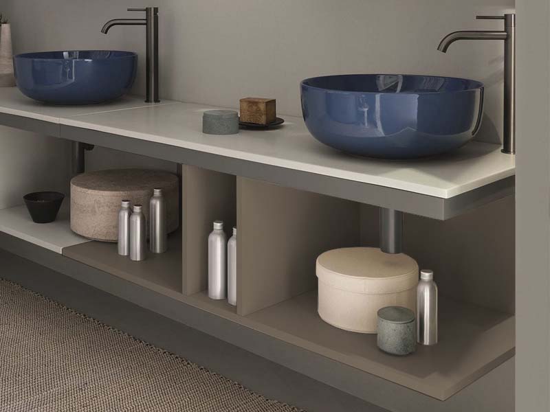 CIELO MULTIPLO MUMBG140CM Тумба под раковину подвесная с открытыми полками в цвете Arenaria c структурой из стали в отделке Cemento. Обязательное сочетание тумба MUMBG140CM или MUMBG140NM + столешница керамическая MUPI140.