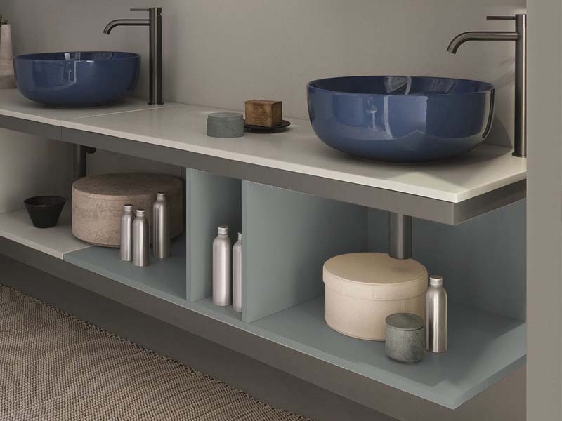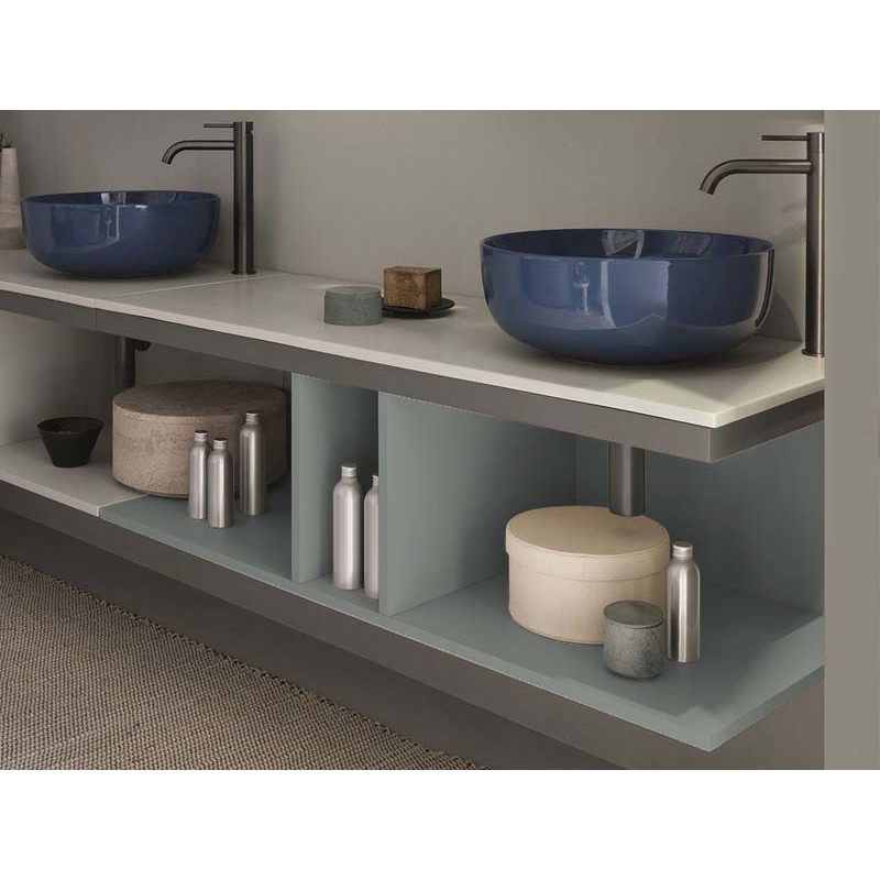 CIELO MULTIPLO MUMBG140CM Тумба под раковину подвесная с открытыми полками в цвете Brina c структурой из стали в отделке Cemento. Обязательное сочетание тумба MUMBG140CM или MUMBG140NM + столешница керамическая MUPI140.