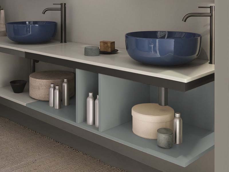 CIELO MULTIPLO MUMBG140NM Тумба под раковину подвесная с открытыми полками в цвете Brina c структурой из стали в черном цвете. Обязательное сочетание тумба MUMBG140CM или MUMBG140NM + столешница керамическая MUPI140.