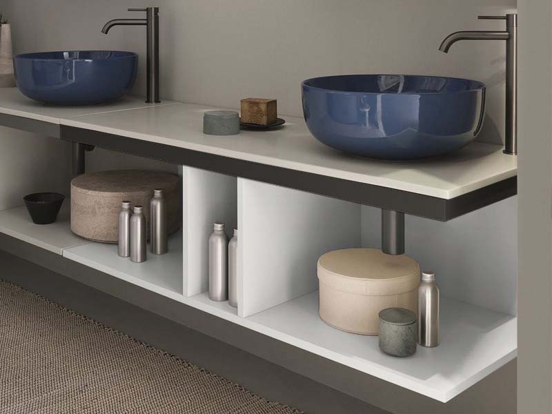 CIELO MULTIPLO MUMBG140NM Тумба под раковину подвесная с открытыми полками в цвете Talco c структурой из стали в черном цвете. Обязательное сочетание тумба MUMBG140CM или MUMBG140NM + столешница керамическая MUPI140.