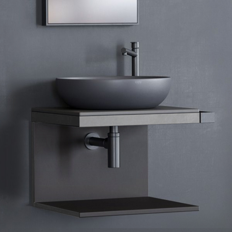 CIELO MULTIPLO MUMBG50CM Тумба под раковину подвесная с открытыми полками в цвете Basalto c структурой из стали в отделке Cemento. Обязательное сочетание тумба MUMBG50CM или MUMBG50NM + столешница керамическая MUPI50.