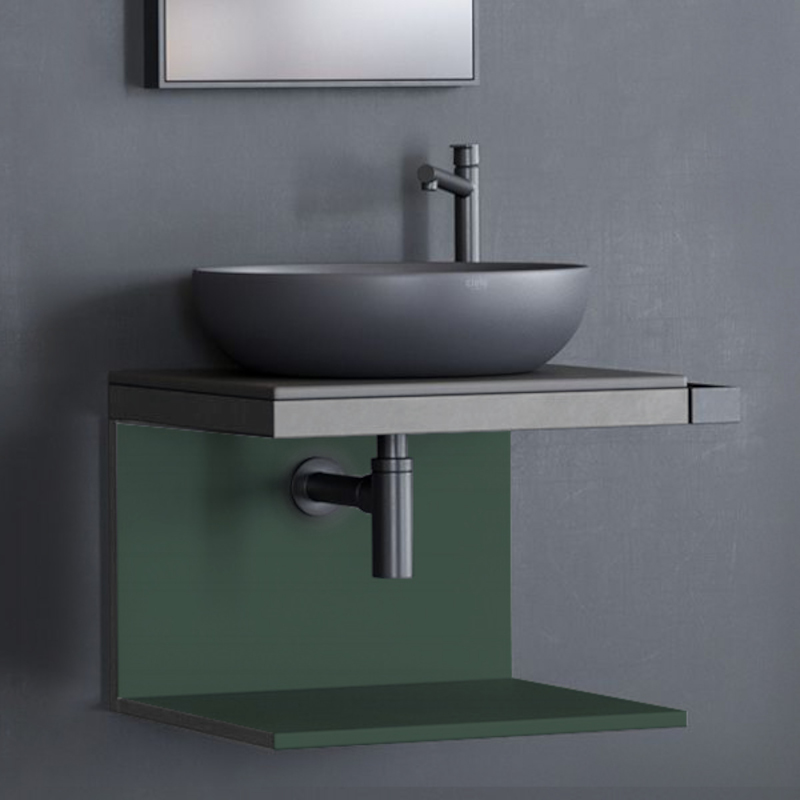 CIELO MULTIPLO MUMBG50CM Тумба под раковину подвесная с открытыми полками в цвете Arenaria c структурой из стали в отделке Muschio. Обязательное сочетание тумба MUMBG50CM или MUMBG50NM + столешница керамическая MUPI50.