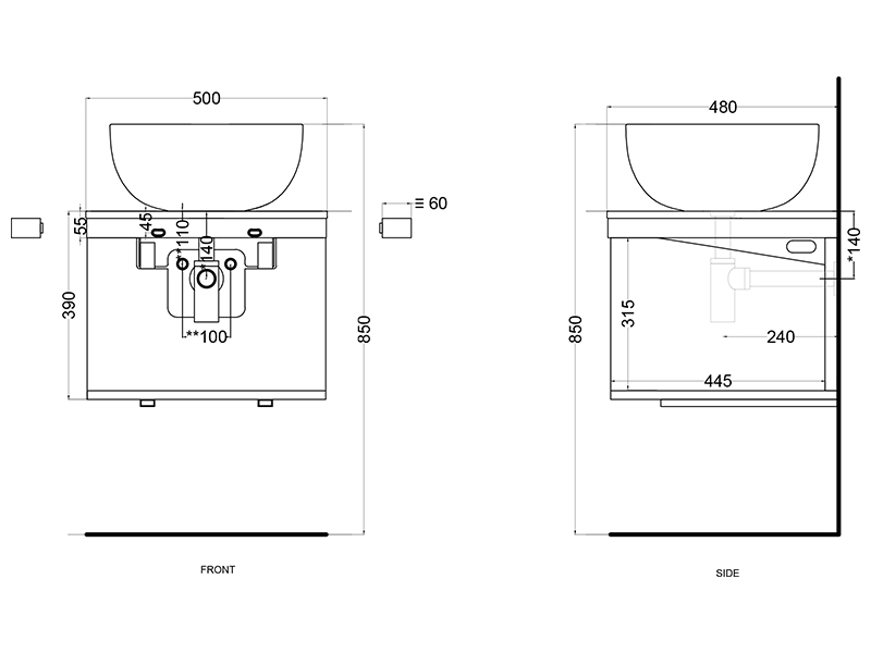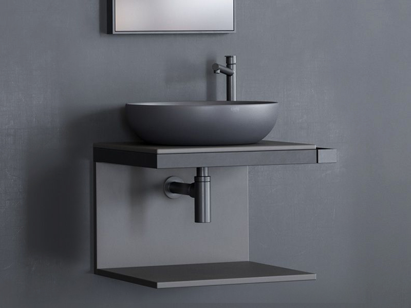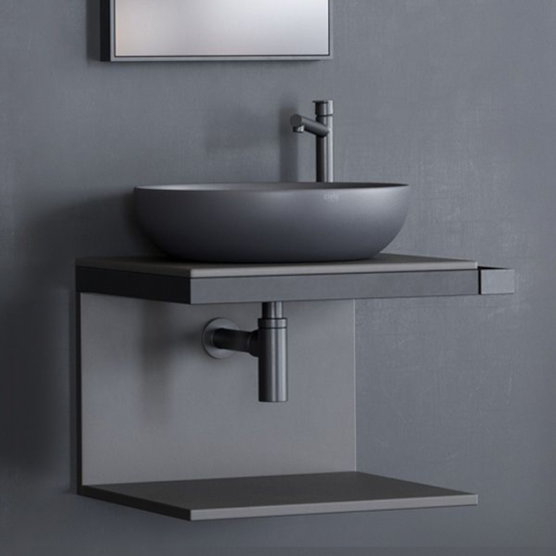 CIELO MULTIPLO MUMBG50CM Тумба под раковину подвесная с открытыми полками в цвете Cemento c структурой из стали в черном цвете. Обязательное сочетание тумба MUMBG50CM или MUMBG50NM + столешница керамическая MUPI50.