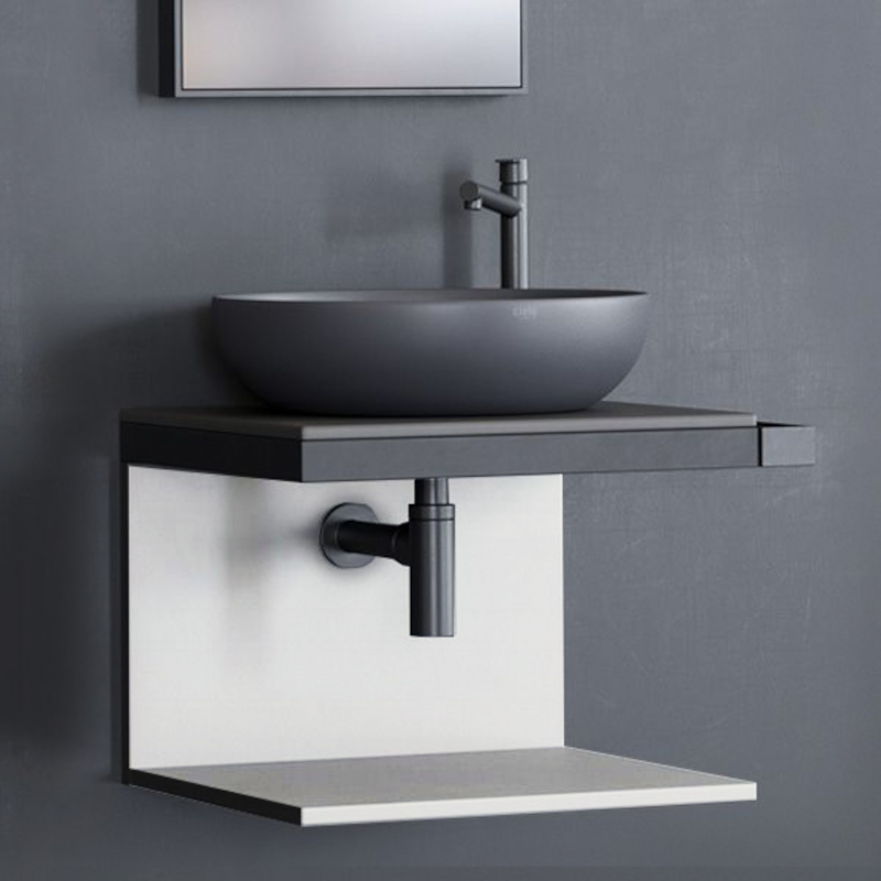 CIELO MULTIPLO MUMBG50NM Тумба под раковину подвесная с открытыми полками в цвете Talco c структурой из стали в черном цвете. Обязательное сочетание тумба MUMBG50CM или MUMBG50NM + столешница керамическая MUPI50.