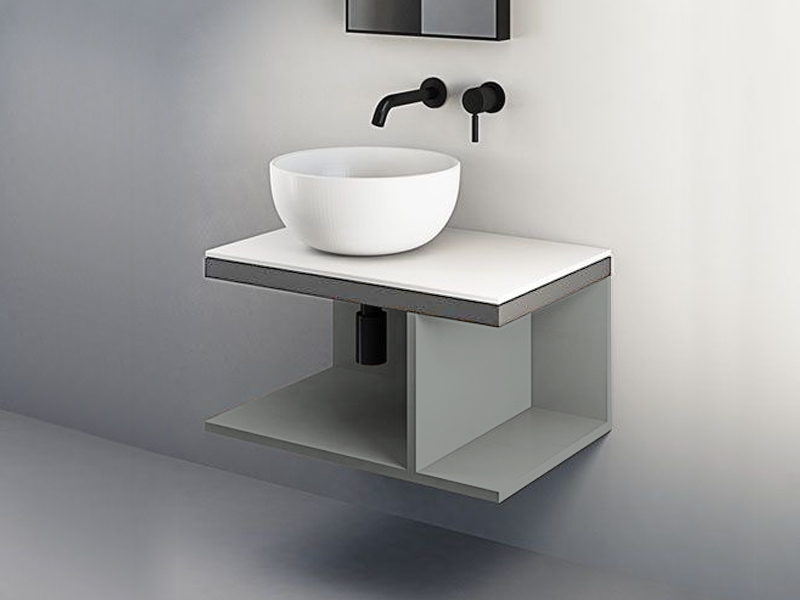 CIELO MULTIPLO MUMBG70CM Тумба под раковину подвесная с открытыми полками в цвете Brina c структурой из стали в отделке Cemento. Обязательное сочетание тумба MUMBG70CM или MUMBG70NM + столешница керамическая MUPI70.
