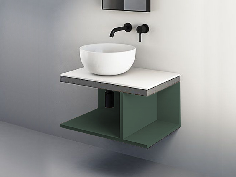 CIELO MULTIPLO MUMBG70CM Тумба под раковину подвесная с открытыми полками в цвете Arenaria c структурой из стали в отделке Muschio. Обязательное сочетание тумба MUMBG70CM или MUMBG70NM + столешница керамическая MUPI70.