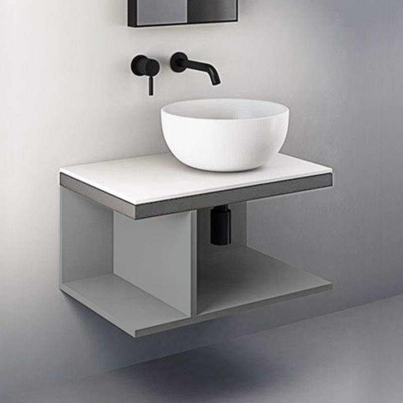 CIELO MULTIPLO MUMBG70DXCM Тумба под раковину подвесная с открытыми полками (перегородка полки смещена влево) в цвете Brina c структурой из стали в отделке Cemento. Обязательное сочетание тумба MUMBG70CM, MUMBG70NM, MUMBG70DXNM, MUMBG70DXCM + столешница керамическая MUPI70.