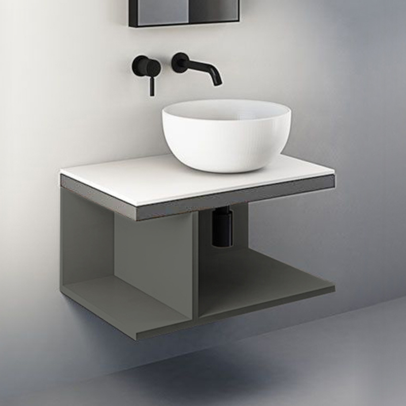 CIELO MULTIPLO MUMBG70DXCM Тумба под раковину подвесная с открытыми полками (перегородка полки смещена влево) в цвете Cemento c структурой из стали в отделке Cemento. Обязательное сочетание тумба MUMBG70CM, MUMBG70NM, MUMBG70DXNM, MUMBG70DXCM + столешница керамическая MUPI70.