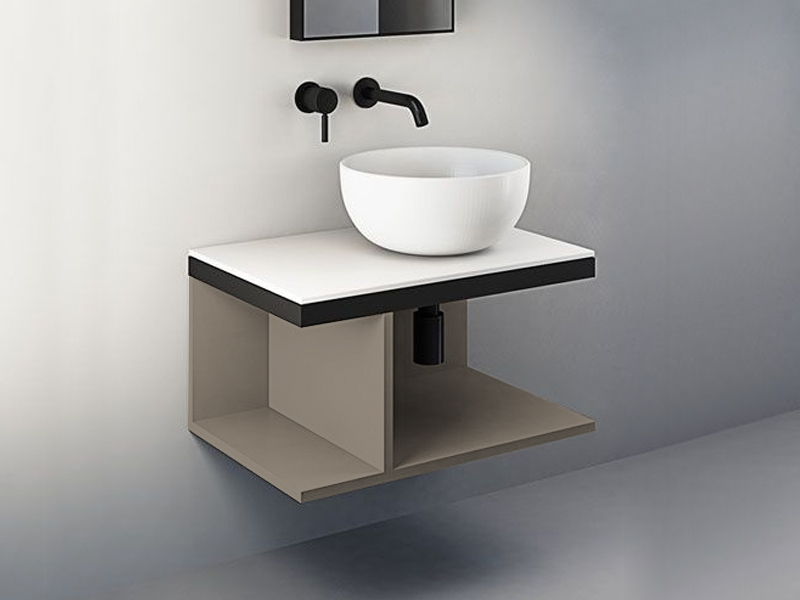 CIELO MULTIPLO MUMBG70DXNM Тумба под раковину подвесная с открытыми полками (перегородка полки смещена влево) в цвете Arenaria c структурой из стали в черном цвете. Обязательное сочетание тумба MUMBG70CM, MUMBG70NM, MUMBG70DXNM, MUMBG70DXCM + столешница керамическая MUPI70.