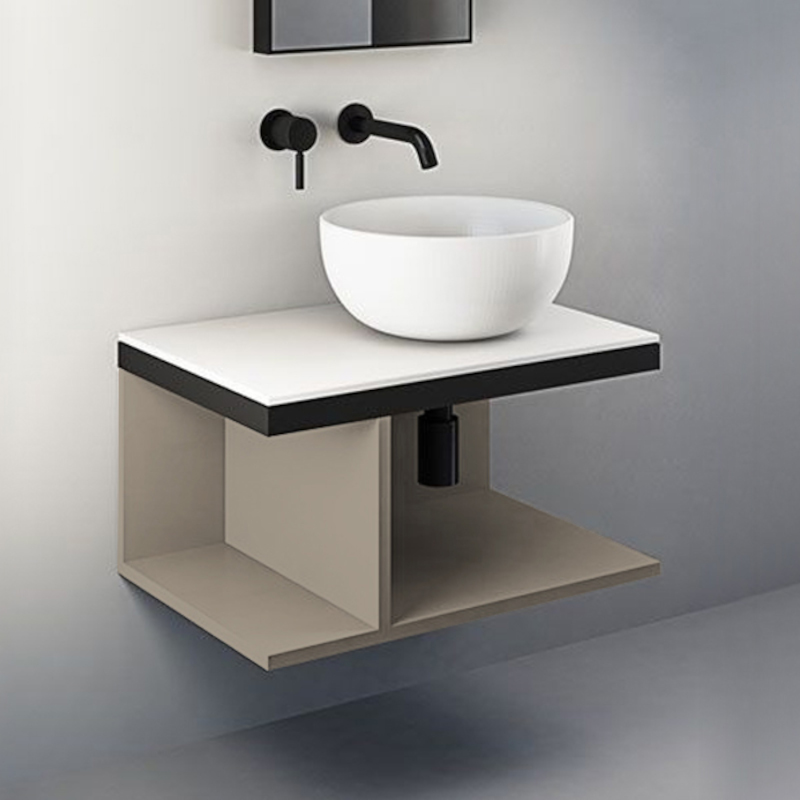 CIELO MULTIPLO MUMBG70DXNM Тумба под раковину подвесная с открытыми полками (перегородка полки смещена влево) в цвете Avena c структурой из стали в черном цвете. Обязательное сочетание тумба MUMBG70CM, MUMBG70NM, MUMBG70DXNM, MUMBG70DXCM + столешница керамическая MUPI70.