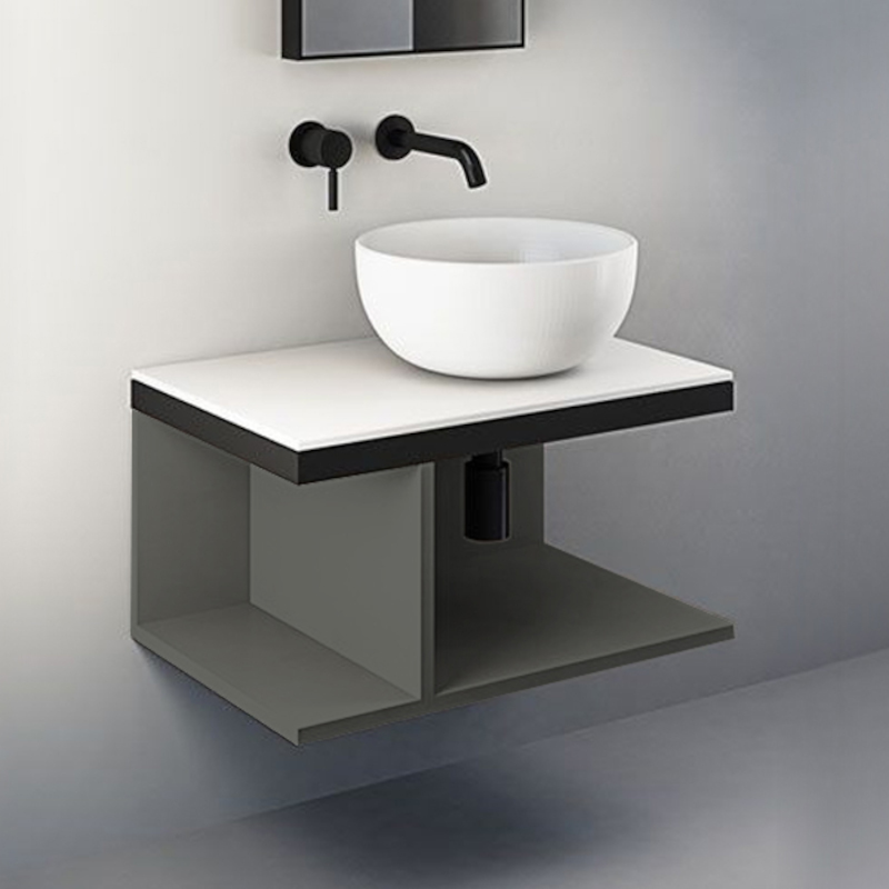CIELO MULTIPLO MUMBG70DXNM Тумба под раковину подвесная с открытыми полками (перегородка полки смещена влево) в цвете Cemento c структурой из стали в черном цвете. Обязательное сочетание тумба MUMBG70CM, MUMBG70NM, MUMBG70DXNM, MUMBG70DXCM + столешница керамическая MUPI70.
