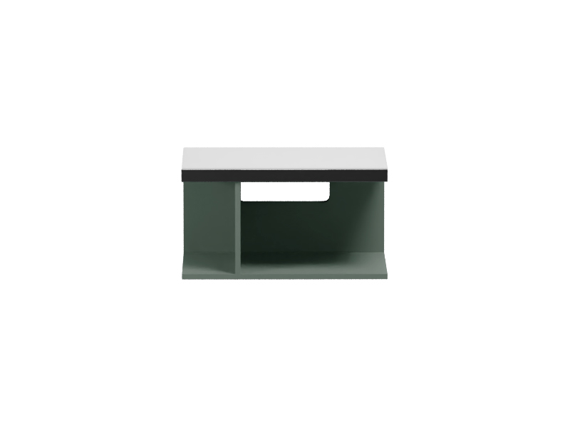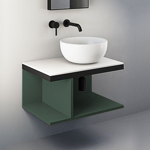 CIELO MULTIPLO MUMBG70DXNM Тумба под раковину подвесная с открытыми полками (перегородка полки смещена влево) в цвете Muschio c структурой из стали в черном цвете. Обязательное сочетание тумба MUMBG70CM, MUMBG70NM, MUMBG70DXNM, MUMBG70DXCM + столешница керамическая MUPI70.