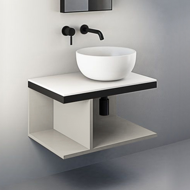 CIELO MULTIPLO MUMBG70DXNM Тумба под раковину подвесная с открытыми полками (перегородка полки смещена влево) в цвете Pomice c структурой из стали в черном цвете. Обязательное сочетание тумба MUMBG70CM, MUMBG70NM, MUMBG70DXNM, MUMBG70DXCM + столешница керамическая MUPI70.