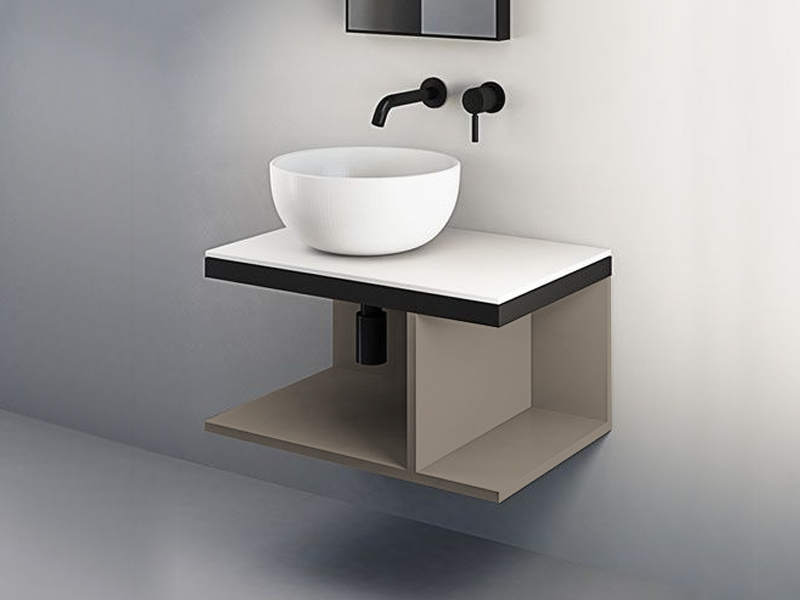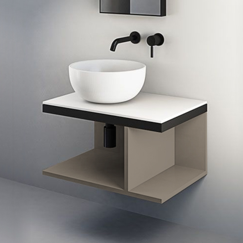 CIELO MULTIPLO MUMBG70NM Тумба под раковину подвесная с открытыми полками в цвете Arenaria c структурой из стали в черном цвете. Обязательное сочетание тумба MUMBG70CM или MUMBG70NM + столешница керамическая MUPI70.