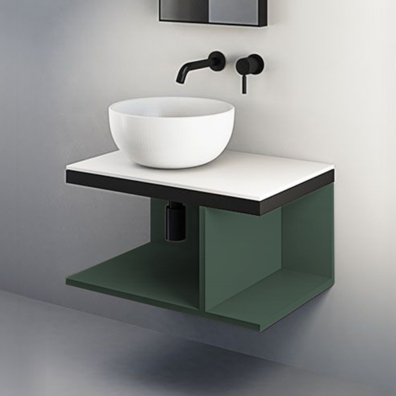 CIELO MULTIPLO MUMBG70NM Тумба под раковину подвесная с открытыми полками в цвете Arenaria c структурой из стали в черном цвете. Обязательное сочетание тумба MUMBG70CM или MUMBG70NM + столешница керамическая MUPI70.