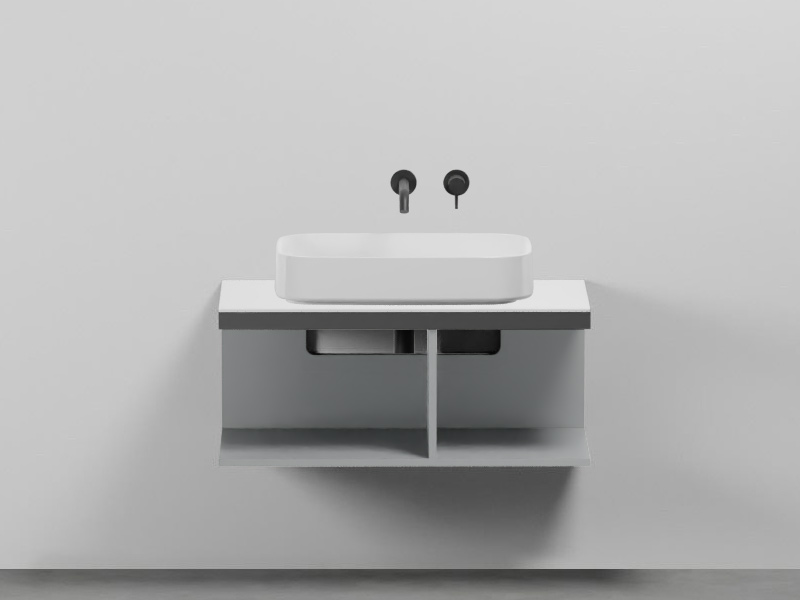 CIELO MULTIPLO MUMBG90CM Тумба под раковину подвесная с открытыми полками в цвете Brina c структурой из стали в отделке Cemento. Обязательное сочетание тумба MUMBG90CM или MUMBG90NM + столешница керамическая MUPI90.