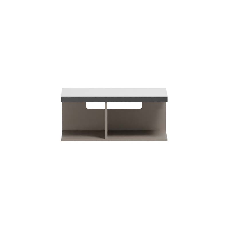 CIELO MULTIPLO MUMBG90DXCM Тумба под раковину подвесная с открытыми полками (перегородка полки смещена влево) в цвете Arenaria c структурой из стали в отделке Cemento. Обязательное сочетание тумба MUMBG90CM или MUMBG90NM + столешница керамическая MUPI90.