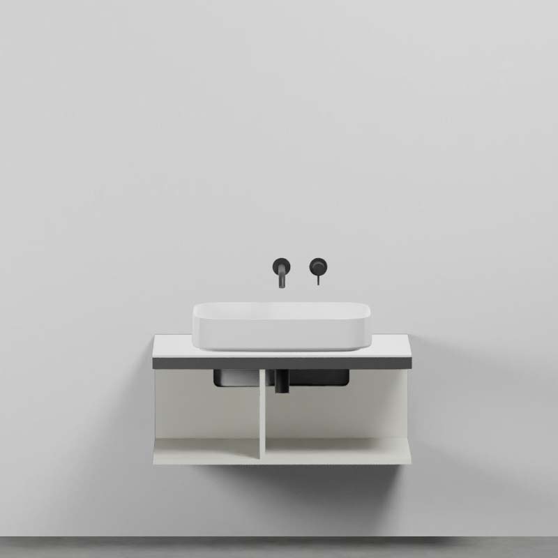 CIELO MULTIPLO MUMBG90DXCM Тумба под раковину подвесная с открытыми полками (перегородка полки смещена влево) в цвете Pomice c структурой из стали в отделке Cemento. Обязательное сочетание тумба MUMBG90CM или MUMBG90NM + столешница керамическая MUPI90.