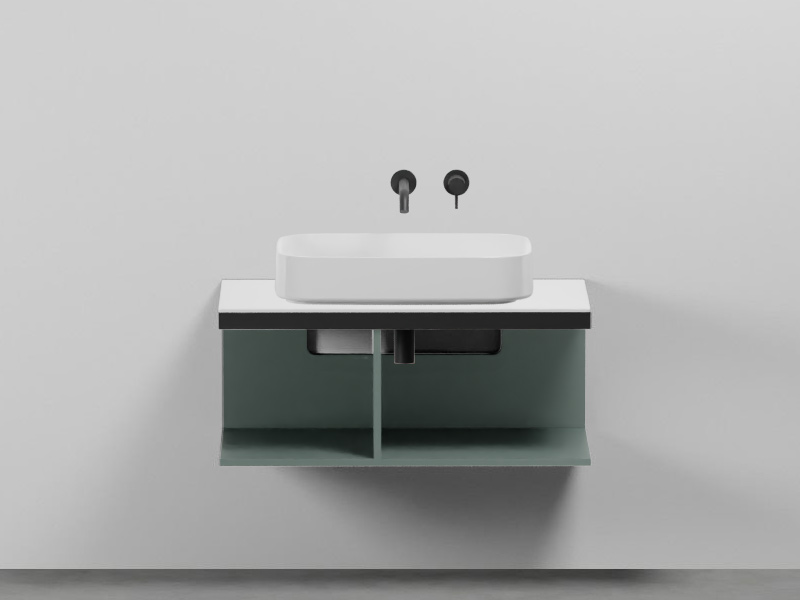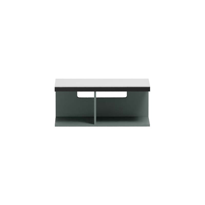 CIELO MULTIPLO MUMBG90DXNM Тумба под раковину подвесная с открытыми полками (перегородка полки смещена влево) в цвете Muschio c структурой из стали в черном цвете. Обязательное сочетание тумба MUMBG90CM, MUMBG90NM, MUMBG90DXNM, MUMBG90DXCM + столешница керамическая MUPI90.