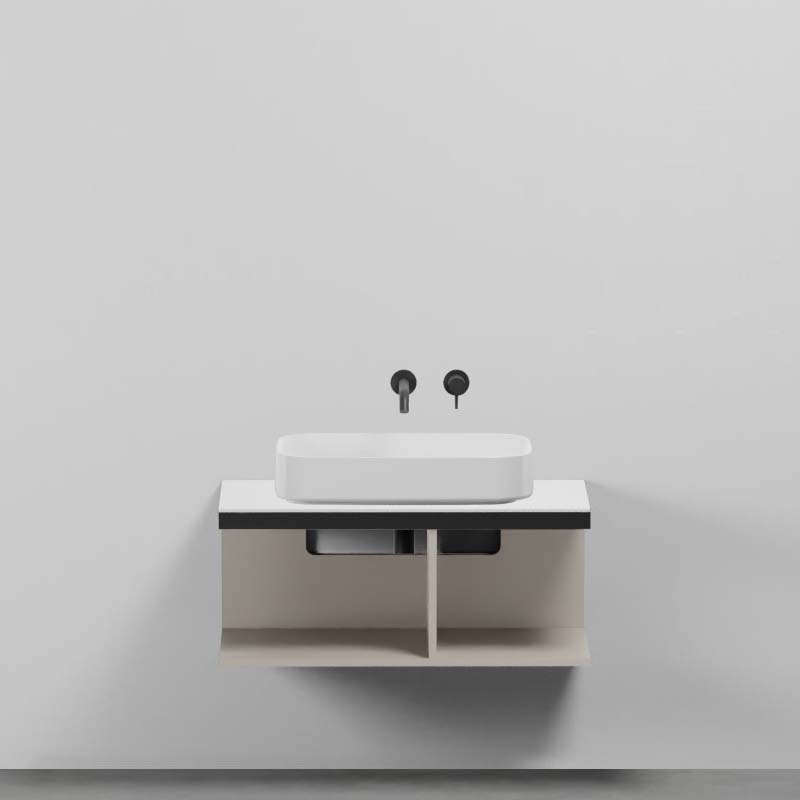 CIELO MULTIPLO MUMBC90NM Тумба под раковину подвесная с открытыми полками в цвете Avena c структурой из стали в черном цвете. Обязательное сочетание тумба MUMBG90CM или MUMBG90NM + столешница керамическая MUPI90.