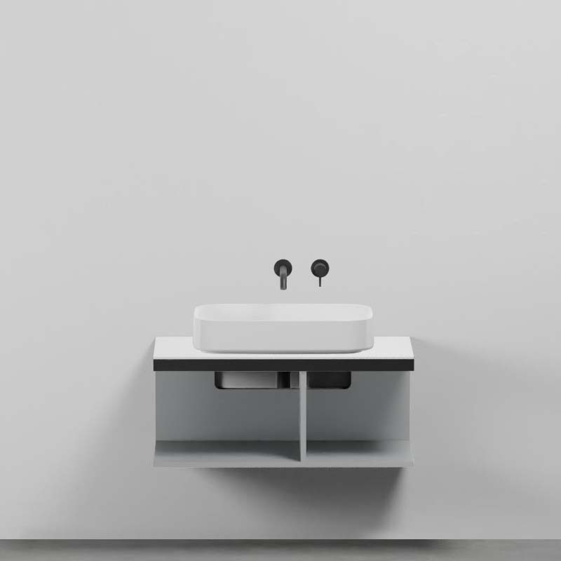 CIELO MULTIPLO MUMBC90NM Тумба под раковину подвесная с открытыми полками в цвете Brina c структурой из стали в черном цвете. Обязательное сочетание тумба MUMBG90CM или MUMBG90NM + столешница керамическая MUPI90.
