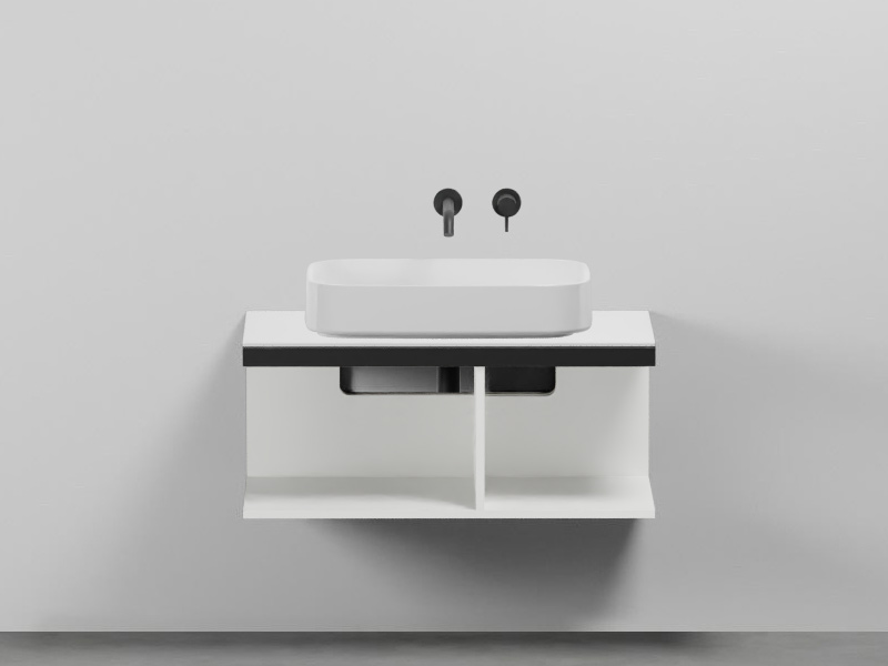 CIELO MULTIPLO MUMBC90NM Тумба под раковину подвесная с открытыми полками в цвете Talco c структурой из стали в черном цвете. Обязательное сочетание тумба MUMBG90CM или MUMBG90NM + столешница керамическая MUPI90.