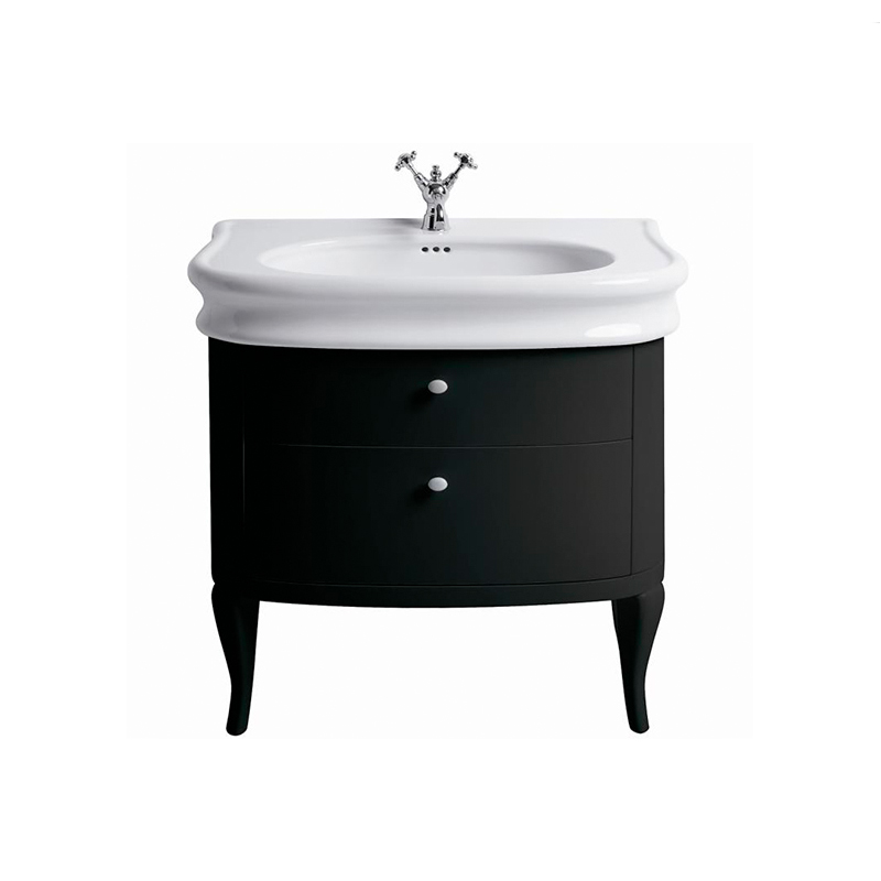 Тумба для раковины SIMAS LANTE LAM 90 nero под консоль LA11, два ящика, скругленные углы, размер 50x79.5x75 см, цвет черный глянцевый.