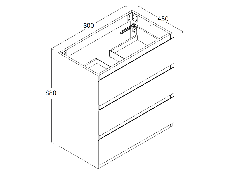 Тумба под раковину с 3-мя выдвижными ящиками. Размеры: 80x45x88H см . Цвет тумбы белый матовый. Тумба продается комплектом с раковиной .