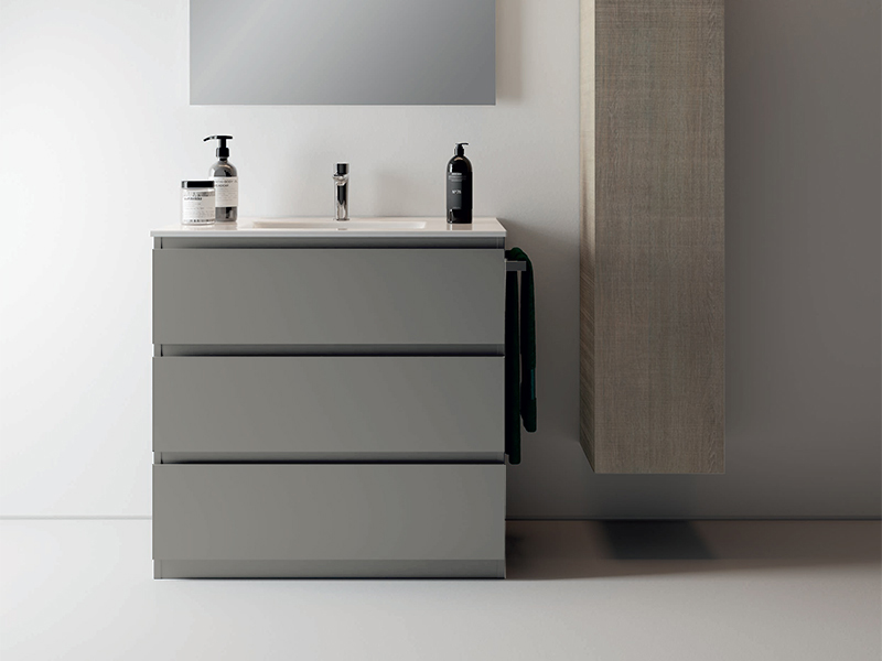 Тумба под раковину с 3-мя выдвижными ящиками. Размеры: 100x45x88H см . Цвет тумбы серый глянцевый. Тумба продается комплектом с раковиной .