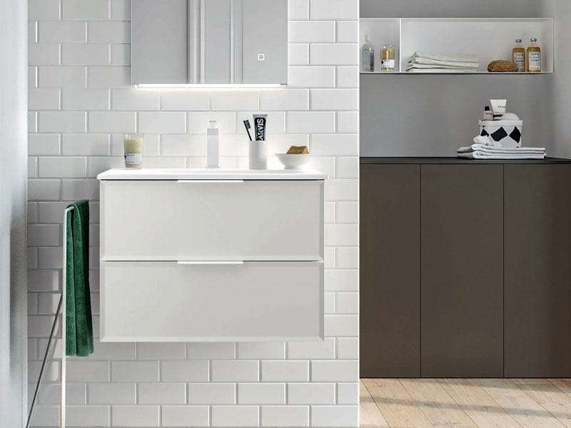 SUITE Тумба под раковину с 2-мя выдвижными ящиками с ручками. Размеры: 90x51,5x50H см . Цвет тумбы Bianco Lucido, цвет ручек в цвете тумбы. Тумба продается комплектом с раковиной.