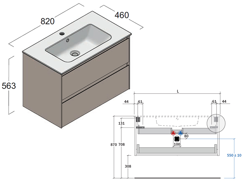 WAY BLOCK Тумба под раковину с 2-мя ящиками (WAK0002), цвет ROVERE BIONDO