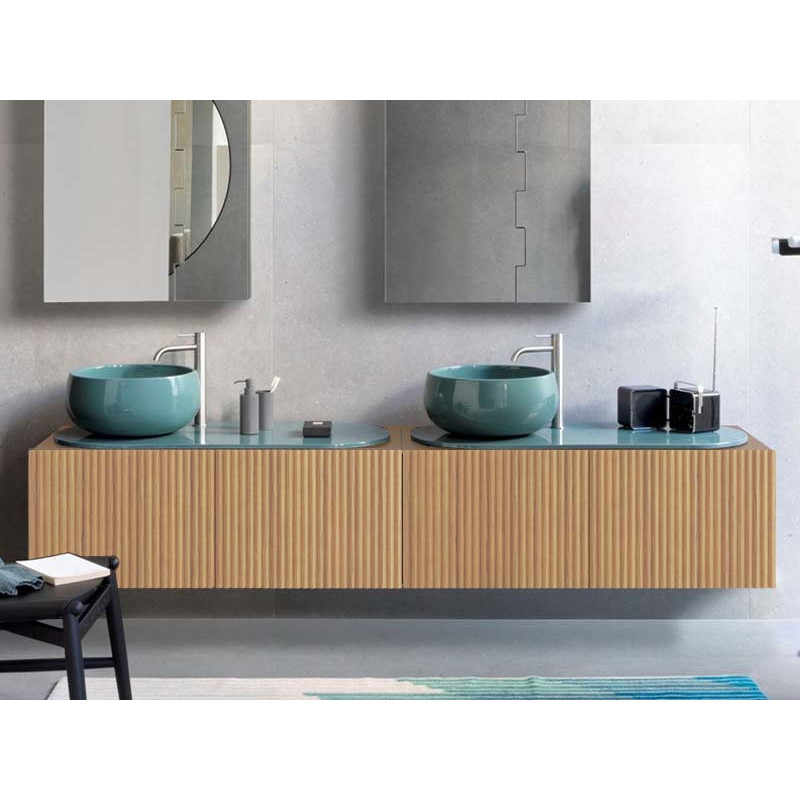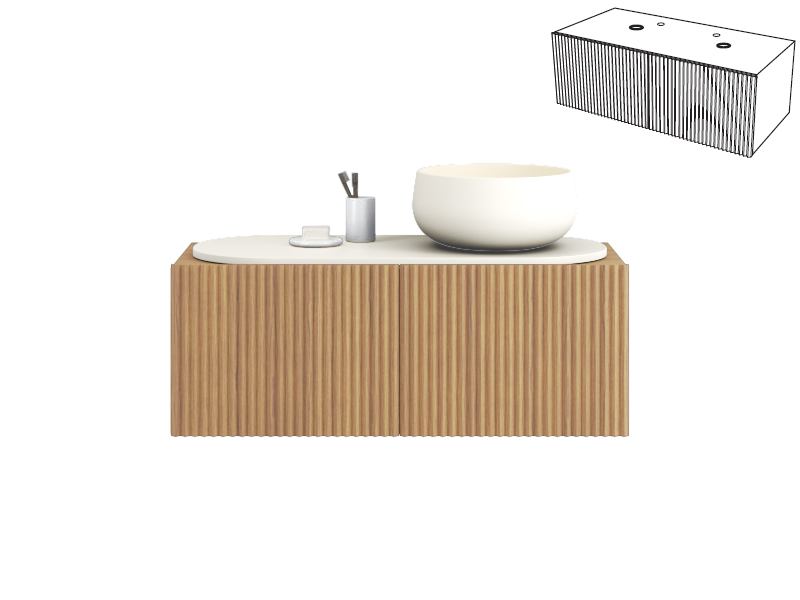 CIELO Тумба подвесная под раковину с отверстиями.Тумба с передней дверцей из массива бруса треугольной формы из натурального шпона дерева. Размеры: 113x52x40h, Цвет Rovere Naturale.