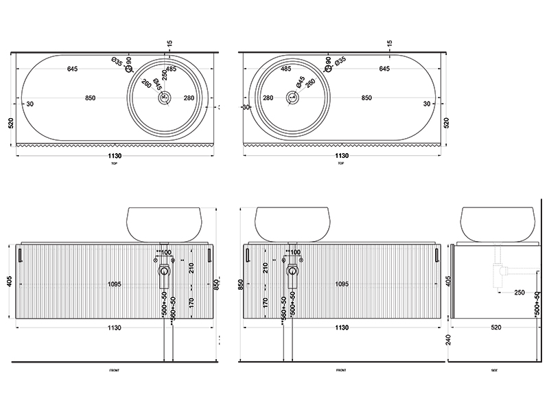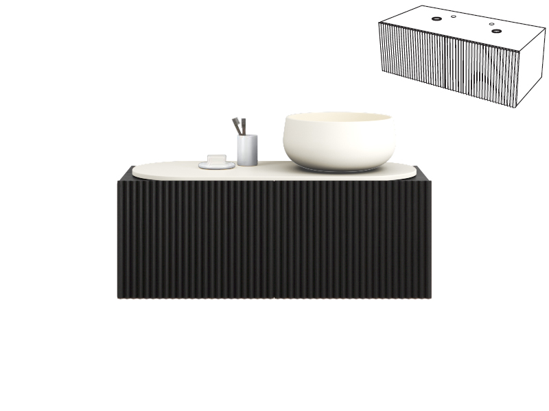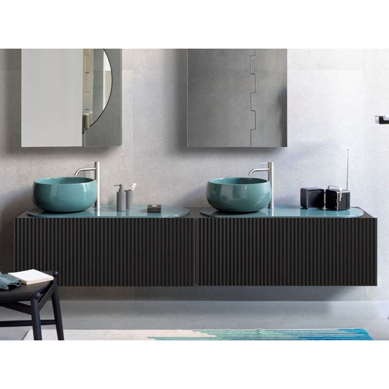 CIELO Тумба подвесная под раковину с отверстиями.Тумба с передней дверцей из массива бруса треугольной формы из натурального шпона дерева. Размеры: 113x52x40h, Цвет Rovere Nero.
