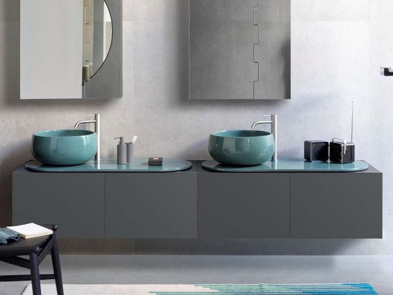 CIELO DECL BA DELFO Тумба подвесная крашенная, цвет Basalto, 2 отверстия для раковин
