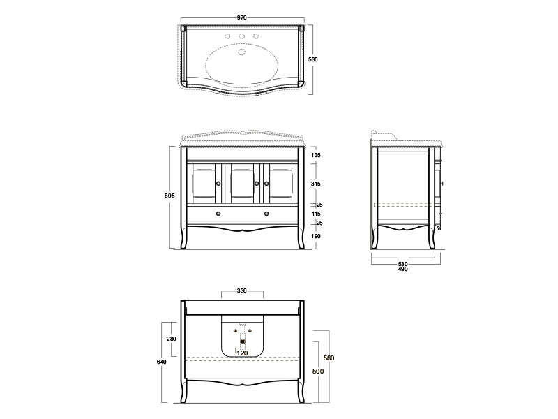Тумба под раковину SIMAS ARMC105, под раковину AR874, с прямыми дверцами, размер 53x97x80.5 см, цвет белый.