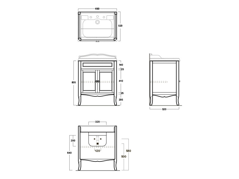 Тумба под раковину SIMAS ARMD70, под раковину AR834, с прямыми дверцами, размер 52x69x63 см, цвет белый.