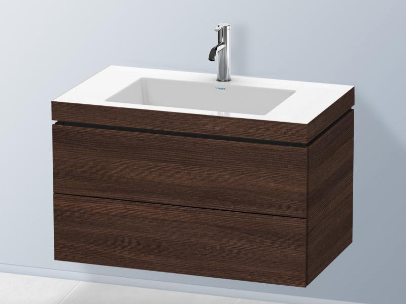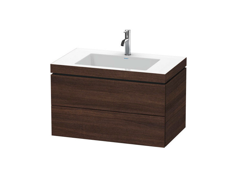 L-CUBE Тумба с раковиной 1 отверстие под смеситель, 2 выдвижных ящика, цвет 53 каштан темный, размер 800x480