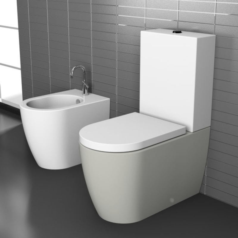 CIELO SMILE SMVMR Унитаз напольный моноблочный BIG в комплекте с крепежами, функциональный бачок 4,5л. Слив в стену при помощи технического колена трансформируется на слив в пол. Размеры 34x64x42h, цвет Pomice. Крышка сиденье и бачок покупается отдельно. Представленная модель унитаза существует в различных цветовых решениях