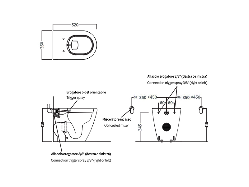 Унитаз приставной безободковый со встроенным биде HATRIA FUSION VBY1ZA01 с универсальным сливом, размер 35.5х54.5 см, цвет белый. Крепления в комплекте. Крышка-сидение приобретается отдельно. Может комплектоваться как бачком арт. Y0MK01, так и бачком скрытого монтажа.