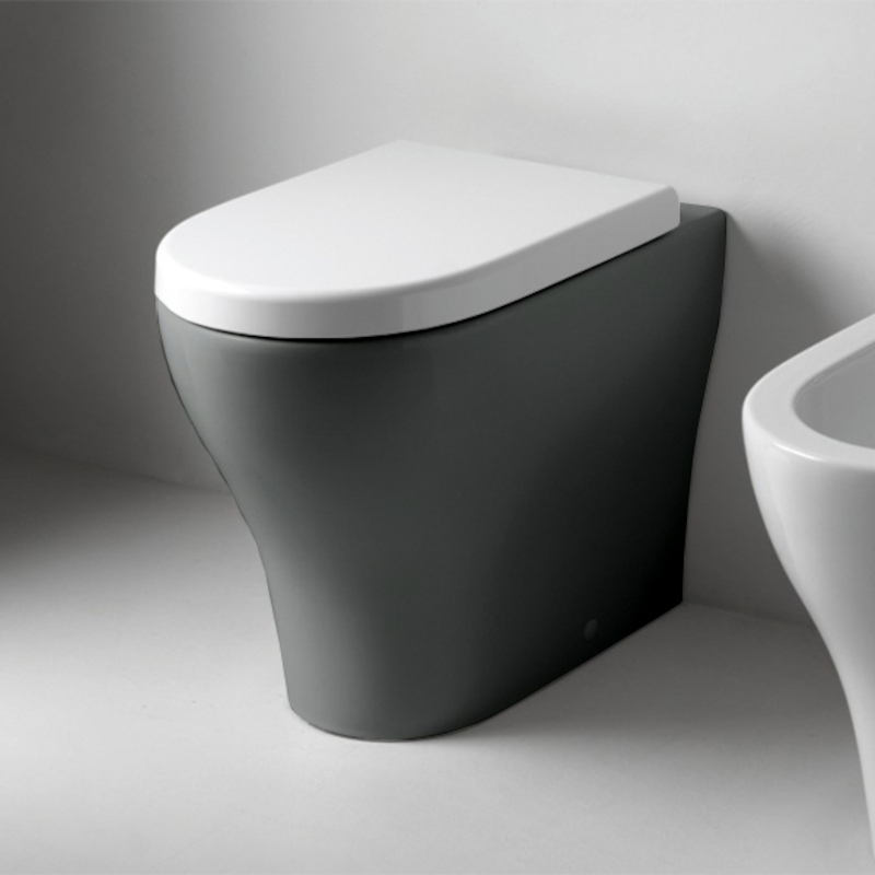 CIELO ENJOY EJVA Унитаз напольный с крепежами в комплекте. Слив в стену при помощи технического колена транформируется на слив в пол. Бачок 4,5л. Размеры 35x53x42h, цвет Brina. Представленная модель унитаза существует в различных цветовых решениях.