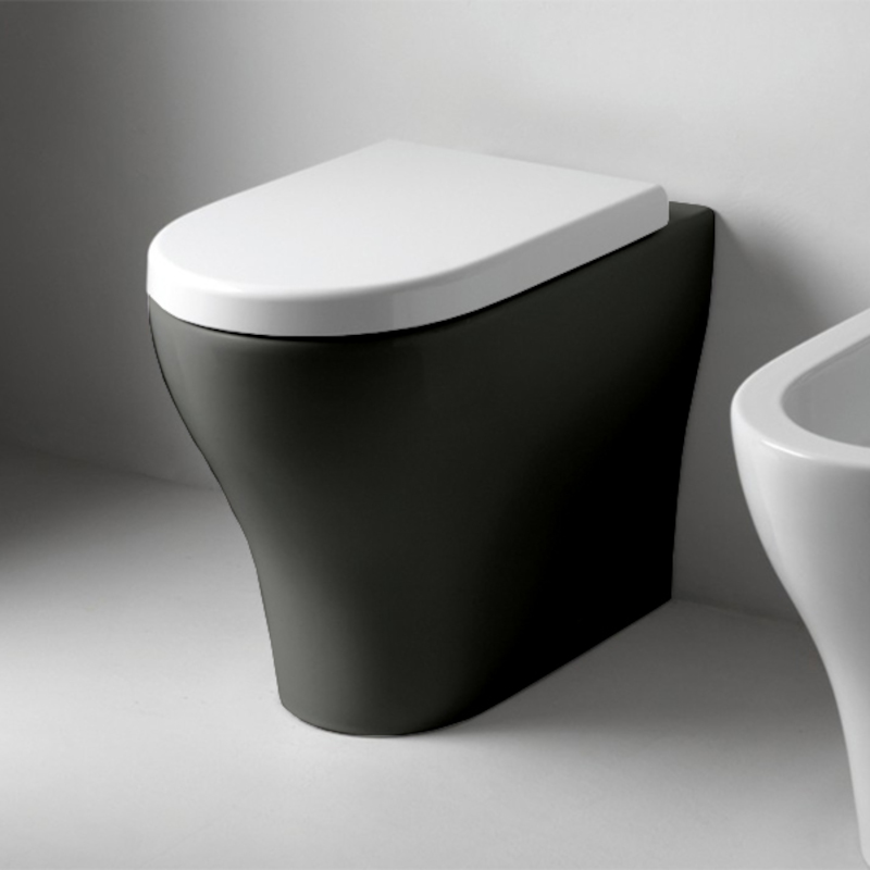 CIELO ENJOY EJVA Унитаз напольный с крепежами в комплекте. Слив в стену при помощи технического колена транформируется на слив в пол. Бачок 4,5л. Размеры 35x53x42h, цвет Cemento. Представленная модель унитаза существует в различных цветовых решениях.