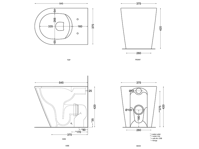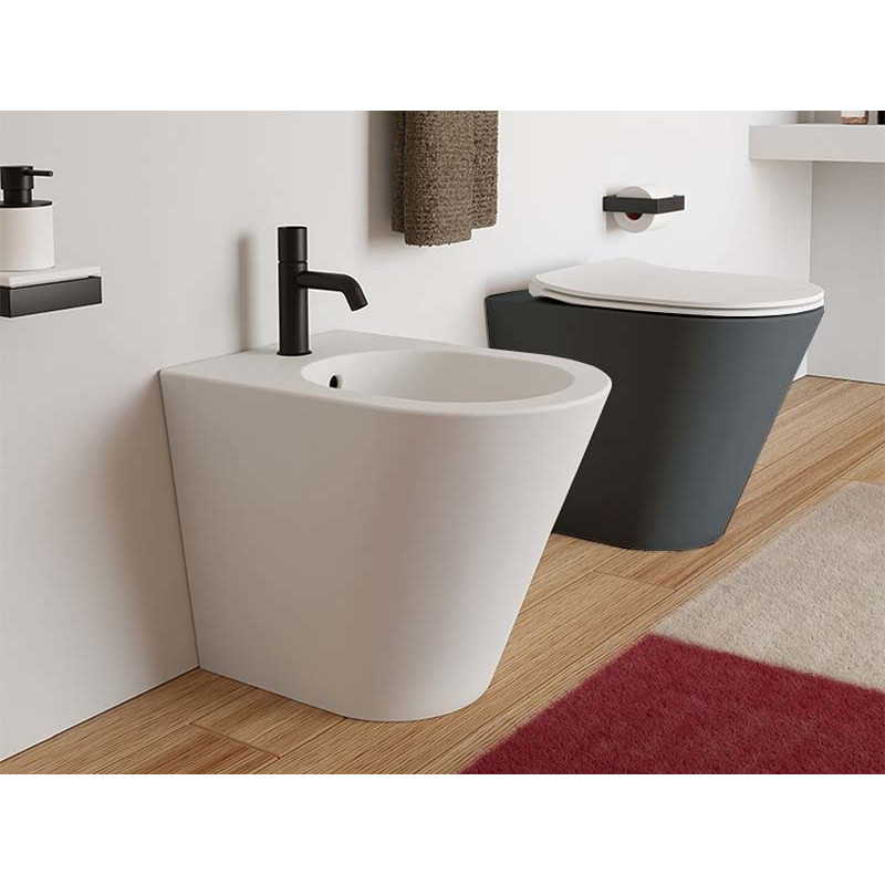 CIELO MARE RIMLESS 2.0.1 MRVAK Унитаз напольный без ободка, слив в стену при помощи технического колена трансформируется на слив в пол, бачок на 4,5 л, Крепежи входят в комплект. Размеры: 54 x 37 x h42 см. Цвет Basalto. Представленная модель унитаза существует в различных цветовых решениях.
