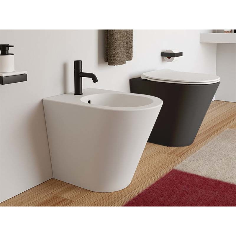CIELO MARE RIMLESS 2.0.1 MRVAK Унитаз напольный без ободка, слив в стену при помощи технического колена трансформируется на слив в пол, бачок на 4,5 л, Крепежи входят в комплект. Размеры: 54 x 37 x h42 см. Цвет Lavagna. Представленная модель унитаза существует в различных цветовых решениях.