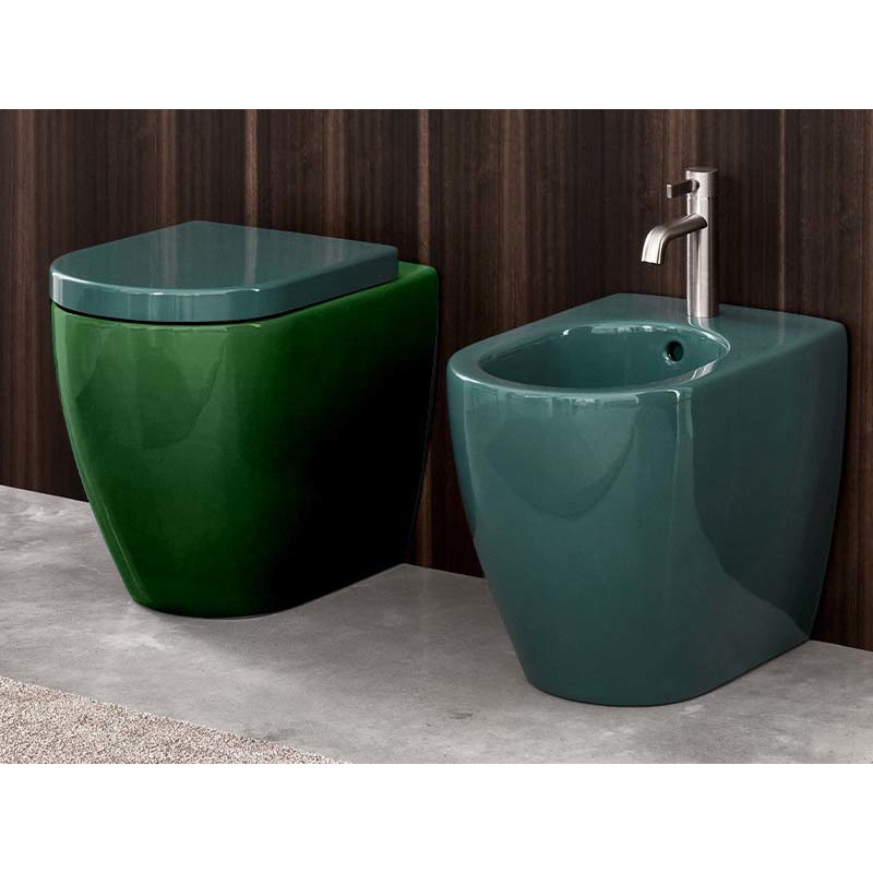 CIELO SMILE 53 SMVASTR Бифункциональный напольный унитаз с адаптируемым выпуском в комплекте с крепежами. Функциональный бачок 4,5л. Размеры 35x54x42h, цвет Alga. Представленная модель унитаза существует в различных цветовых решениях. Крышка сиденье покупается отдельно.