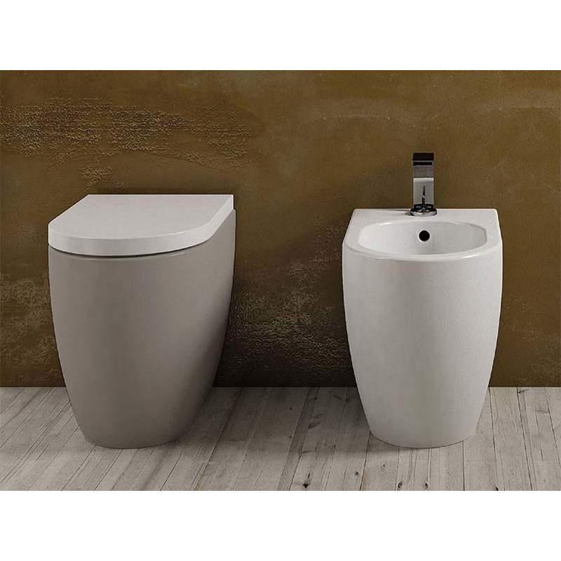 CIELO SMILE 53 SMVASTR Бифункциональный напольный унитаз с адаптируемым выпуском в комплекте с крепежами. Функциональный бачок 4,5л. Размеры 35x54x42h, цвет Avena. Представленная модель унитаза существует в различных цветовых решениях. Крышка сиденье покупается отдельно.